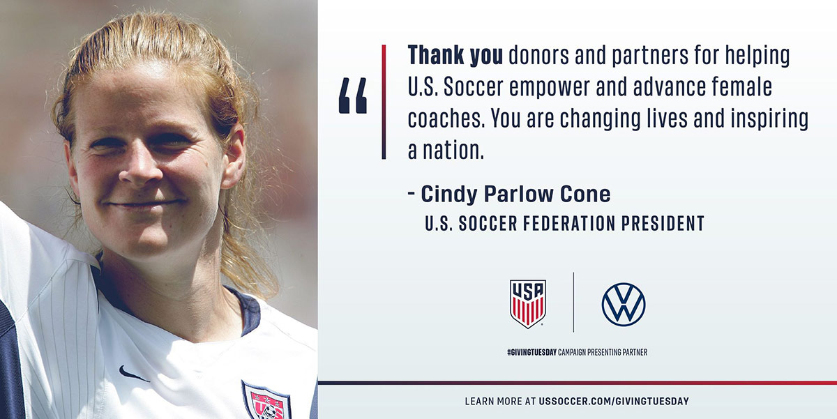 USsoccer.com president Cindy Cone makes a personal show of gratitude in her thank-you social media post. The thanks are more heartfelt when they come from the top, but don’t forget to reach out to individuals in private too, and thank them personally with texts and emails.