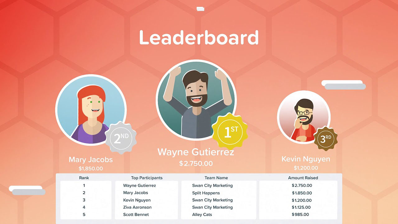 This leaderboard from Qgiv shows how you can make it fun to display your donors publicly and even presents them with virtual awards for the top three rankings. These little displays of gratitude go a long way to encouraging recurring donations and engaging new prospects.